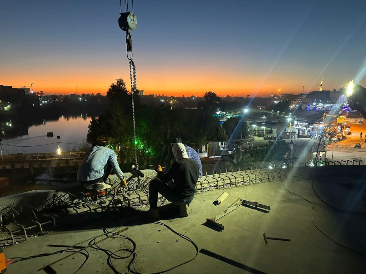 تواصل الملاكات الهندسية والفنية للشفت المسائي اعمالها في مشروع جسر الكريعات .