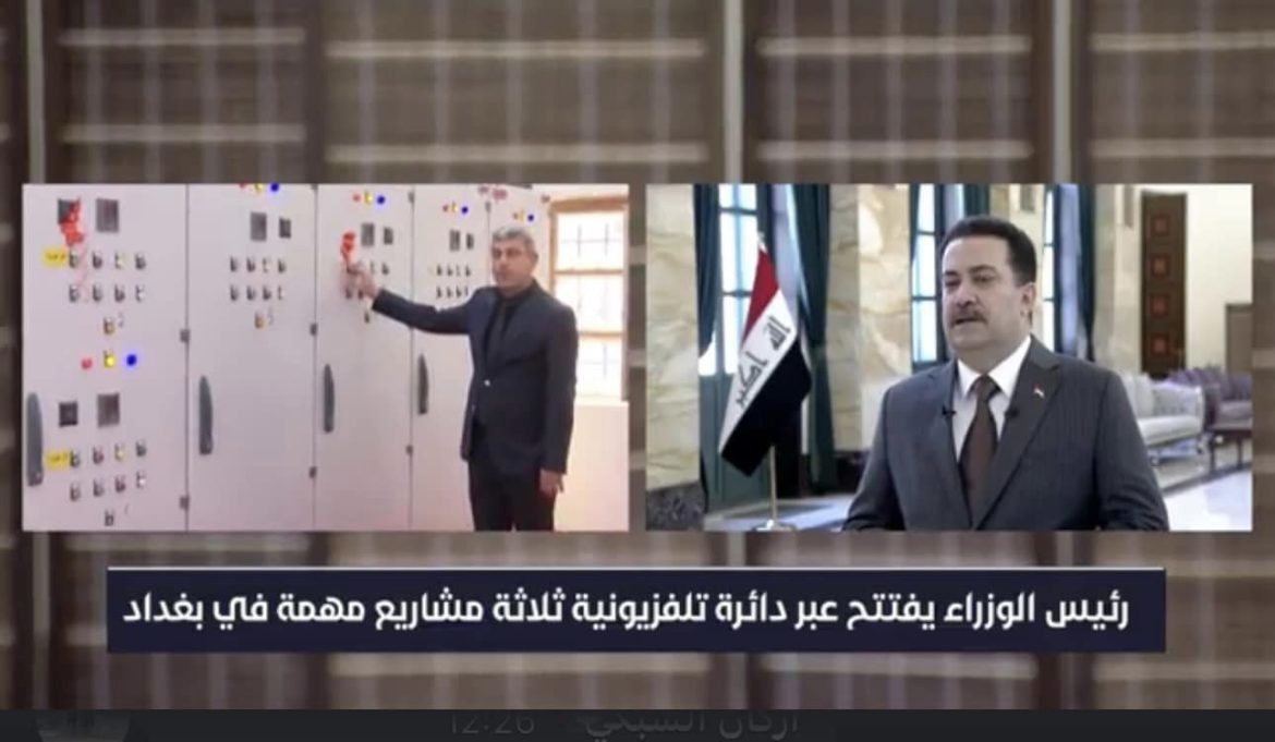 🔹 رئيس مجلس الوزراء السيد محمد شياع السوداني ومعالي وزير الاعمار والاسكان والبلديات العامة ، يفتتح عبر دائرة تلفزيونية مشروع ماء النهروان المركزي في جنوب شرق العاصمة بغداد.