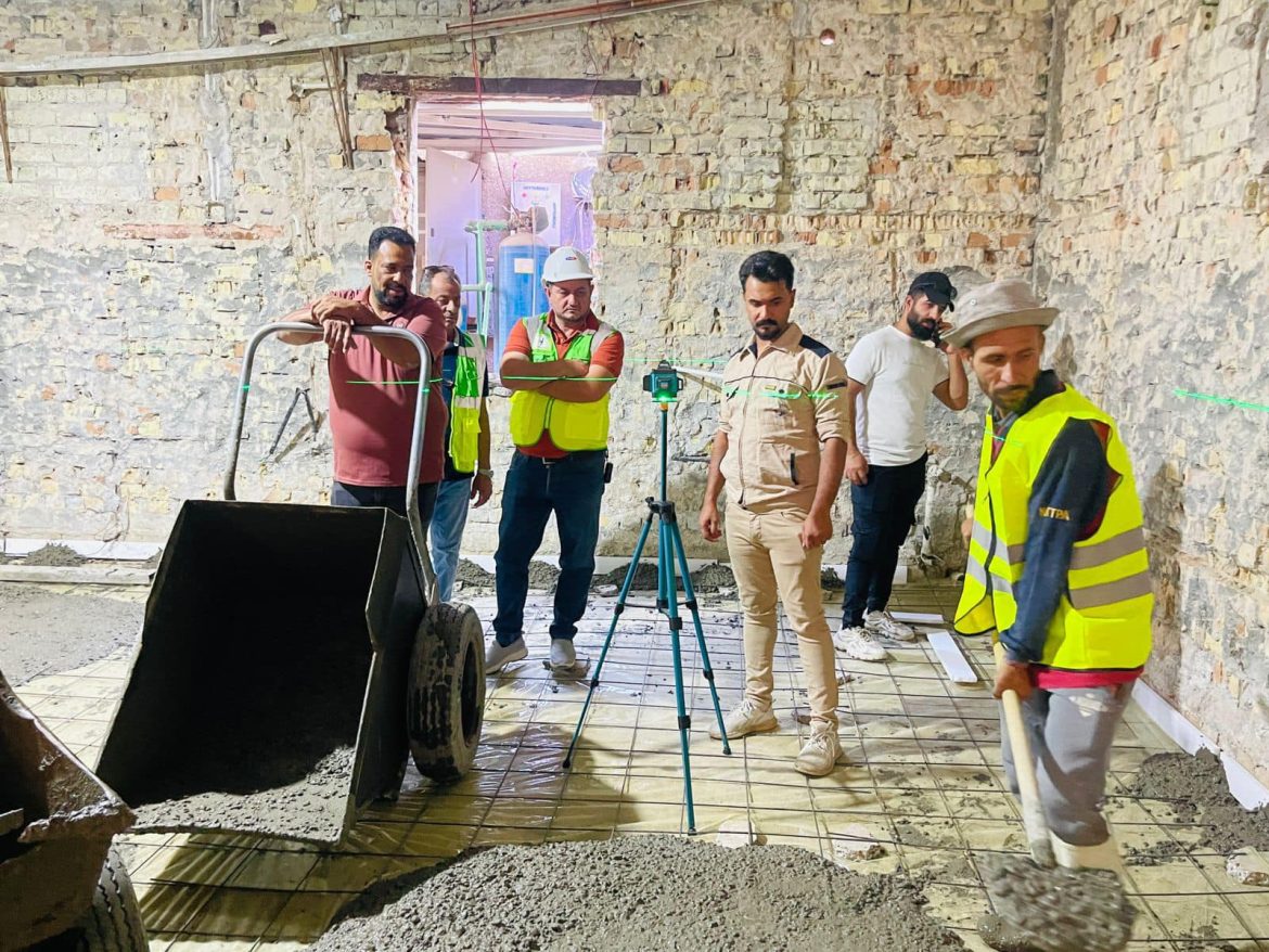 بتوجيه مباشر ومتابعة مستمرة من قبل المهندس الاستشاري الاستاذ “حيدر الميالي ” مدير عام شركة الفاروق للمقاولات العامة ، تستمر الملاكات الهندسية والفنية اعمالها في مستشفى العلوية للاطفال ، تمت المباشرة بصب ارضية المستشفى بعد ازالة الأرضية السابقة المتضررة وأعمال تقشير الجدران تعقبها أعمال تغليف الجدران بالمرمر .
