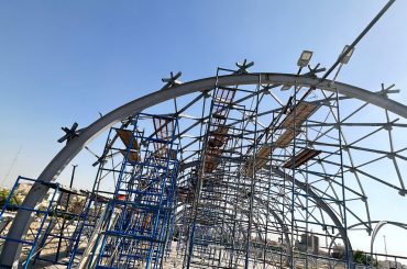 استمرار اعمال تثبيت ولحام مقاطع الحديد وبنسبة انجاز بلغت %70 للفقرة المذكورة ، والمباشرة بأعمال تثبيت السندويج بنل للساحة المثيلة .