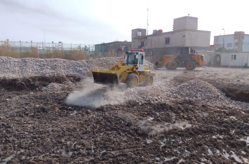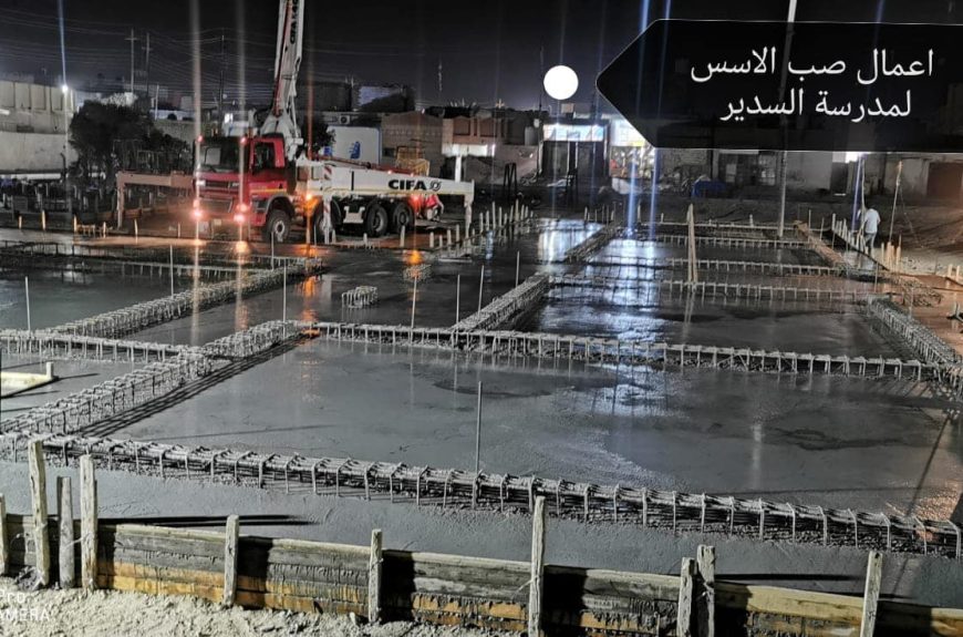 تم الانتهاء من اعمال صب الاسس والعمل جاري على صب الاعمدة الكونكريتية للطابق الارضي .