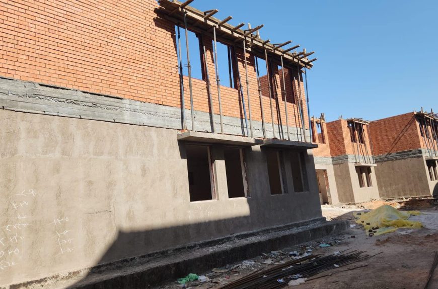 تم الانتهاء من اعمال صب اعمدة الطابق الأول للبناية الرئيسيه وقبعة السياج الخارجي بالاضافة الى سقف بناية الاستعلامات وغرفة الحرس والعمل مستمر لانجاز بقية فقرات العمل حسب المواصفات المطلوبة والوقت...