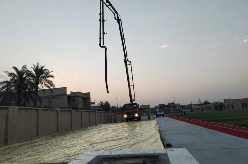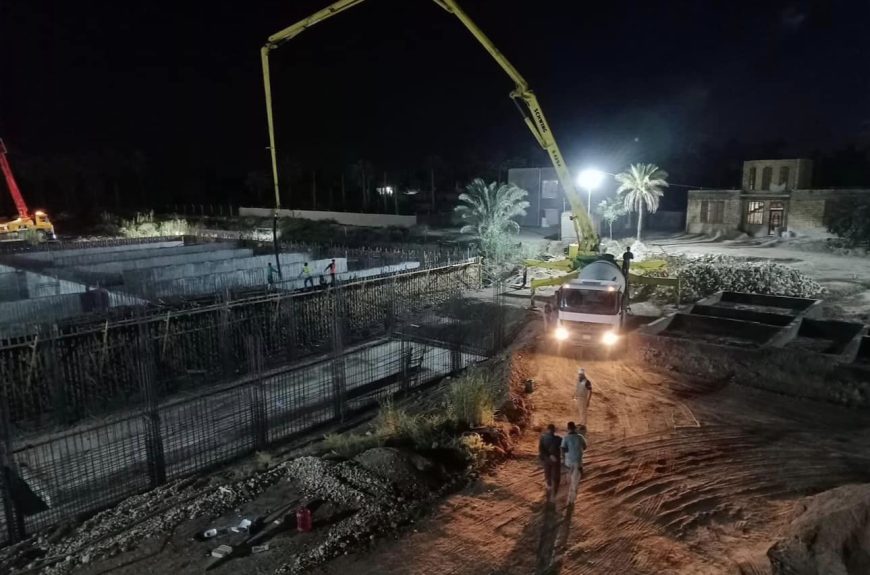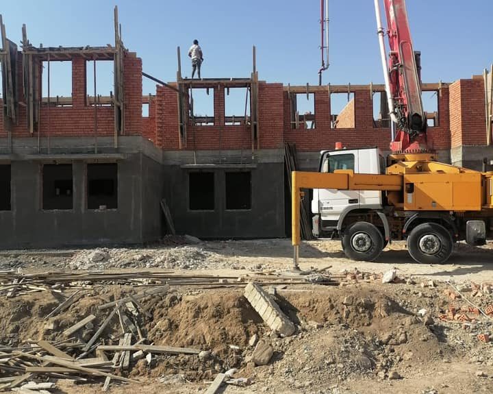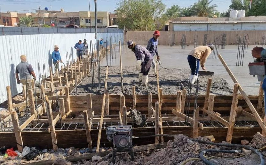 تم الانتهاء من اعمال صب الاسس والعمل جاري على صب الاعمدة الكونكريتية للطابق الارضي .